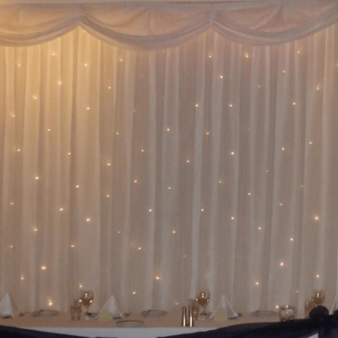 Complete White Twinkle Backdrop with Swag 3m wide x 3m high